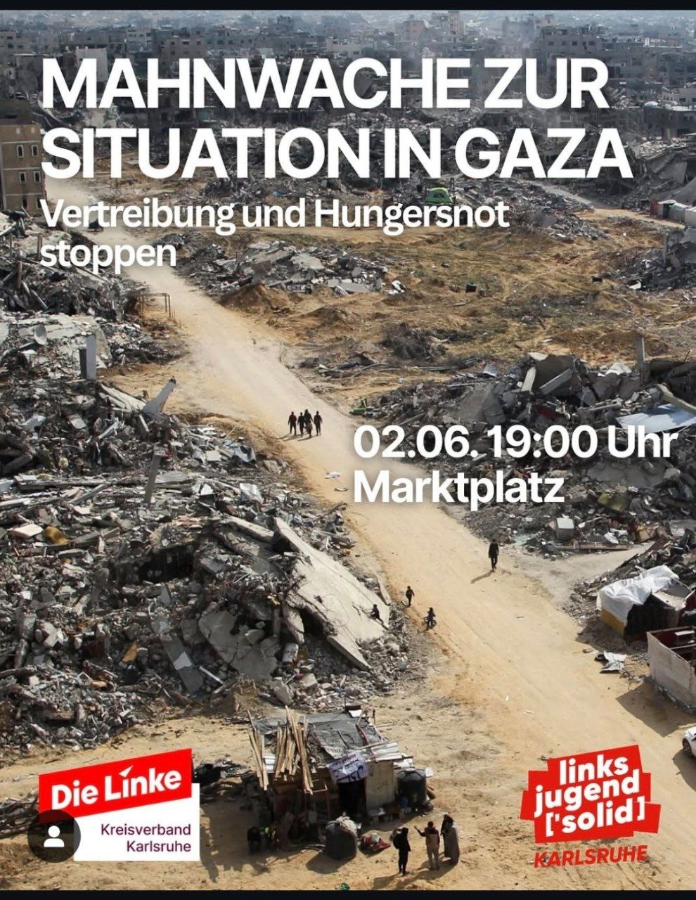 Kommt am Montag, 2. Juni, um 19 Uhr zur Mahnwache auf dem Marktplatz Karlsruhe.