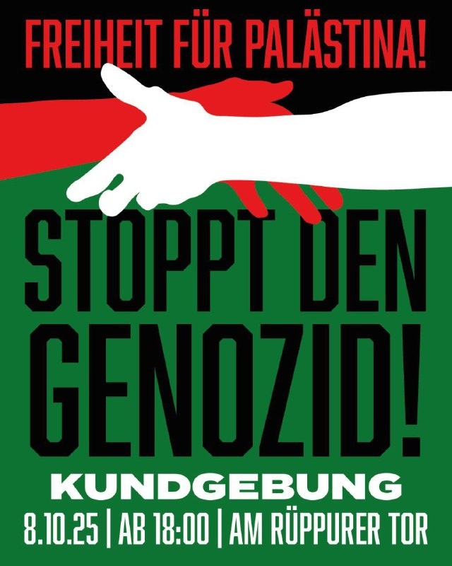 Auch an diesem 8ten Oktober wollen wir nicht schwiegen, sondern nach zwei Jahre offenen Vernichtungskriegs und Völkermords umso stärker ein völliges Ende deutscher Waffenlieferun und Untersützungen an Israelfordern.