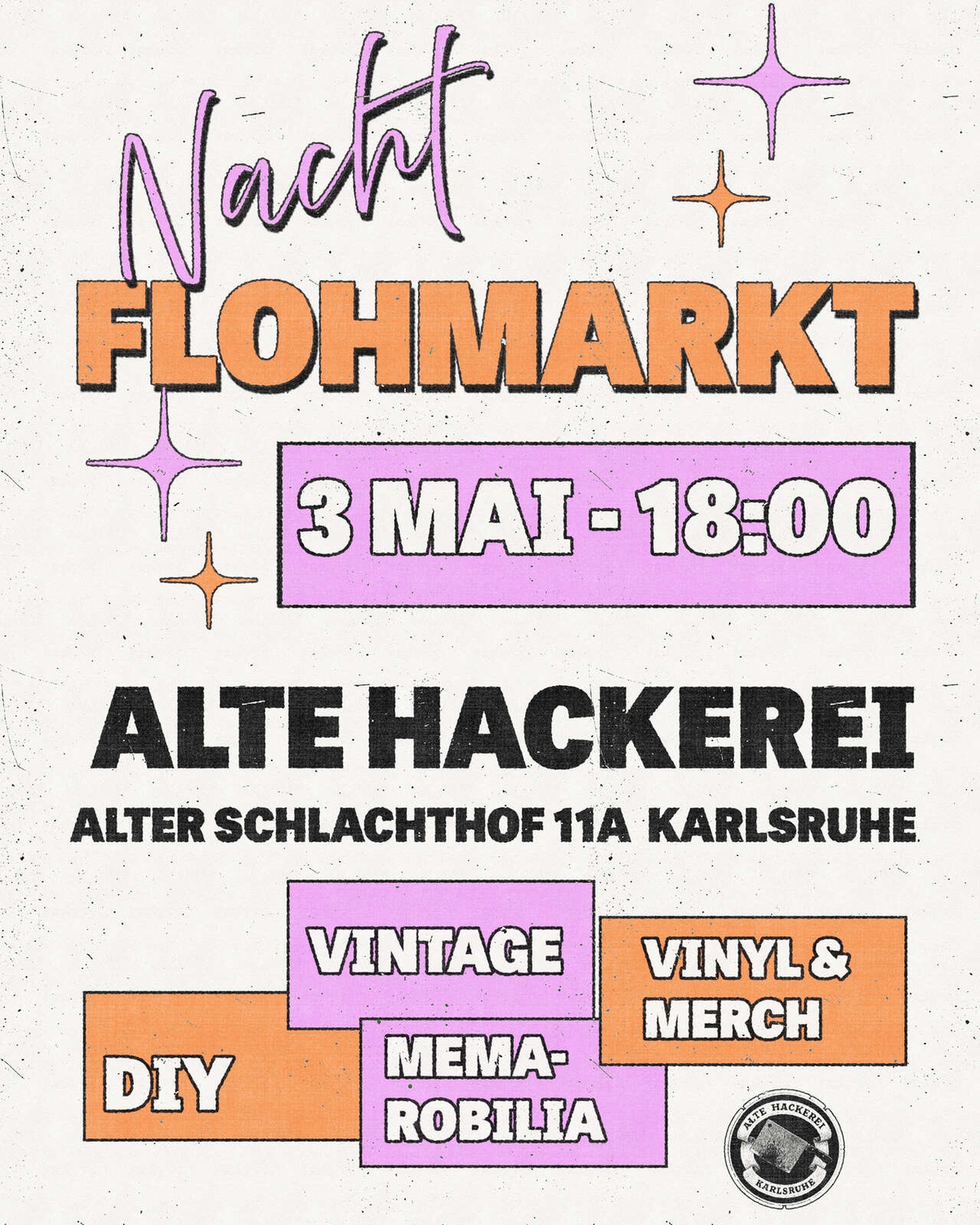 Am Samstag, 03. Mai 2025 machen wir in der Hackerei endlich wieder Flohmarkt. Damit alle dabei sein können spät: Los geht’s um 18:00 Uhr bis 0:00 Uhr. Aufbau ab 16:00 Uhr.