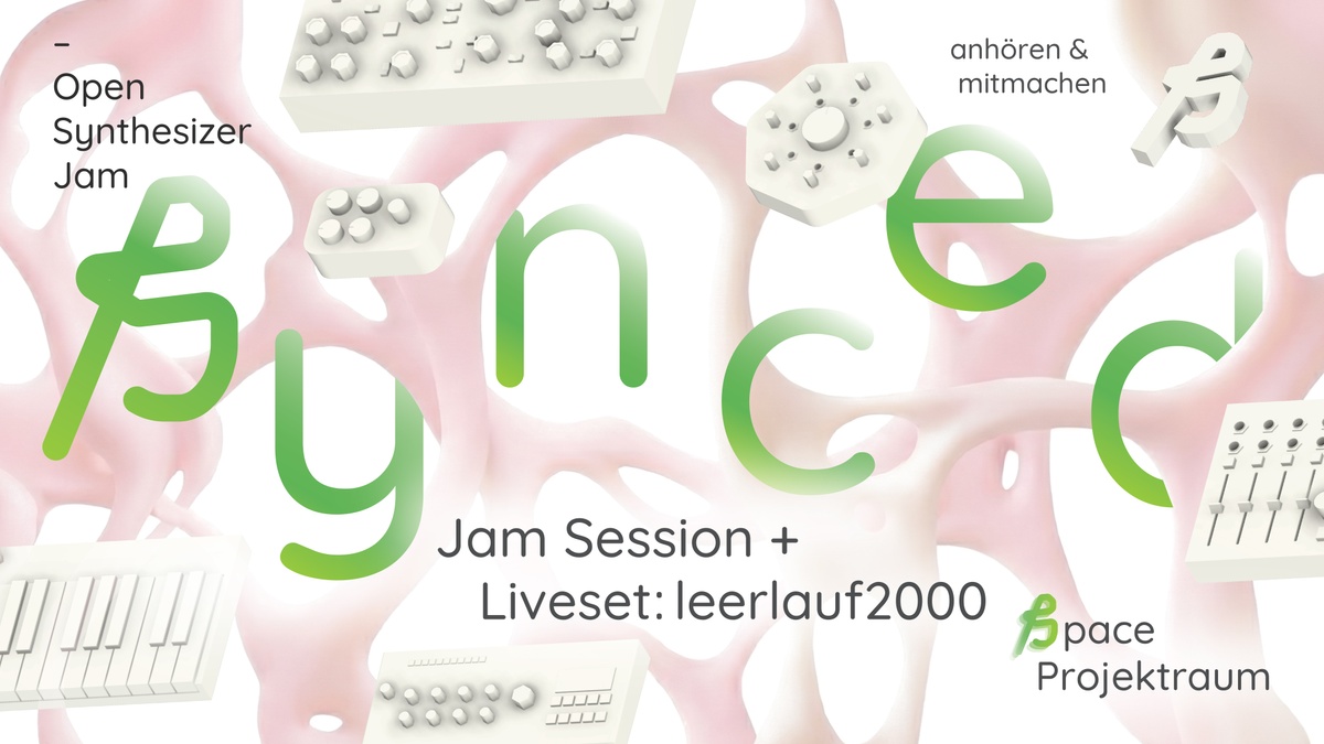 ẞynced again! Bringt eure Synthesizer, die Drummachine oder ein Modularsystem mit, synchronisiert euch über MIDI & CV Clock und macht zusammen Ambientdubtechnopsyschlagerschranztrancehardcorepumucklpopglitchminimalvikingstep!